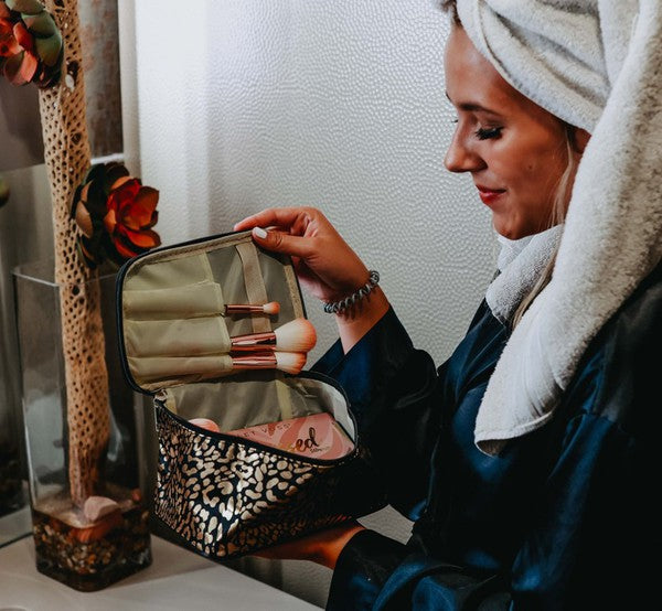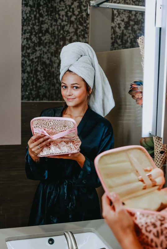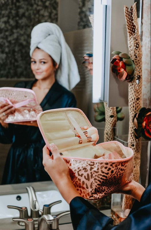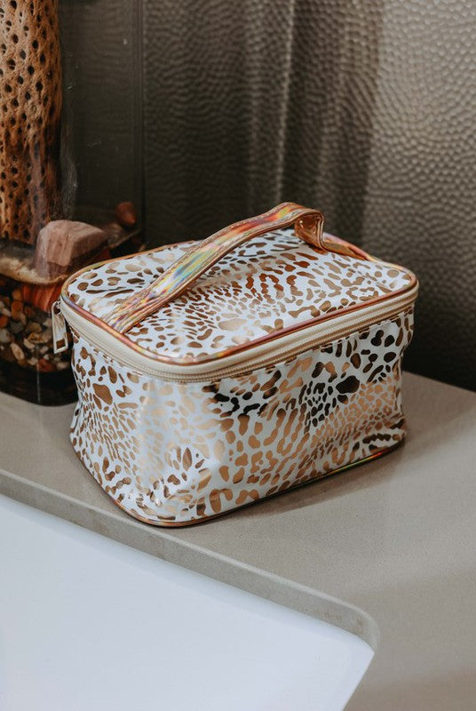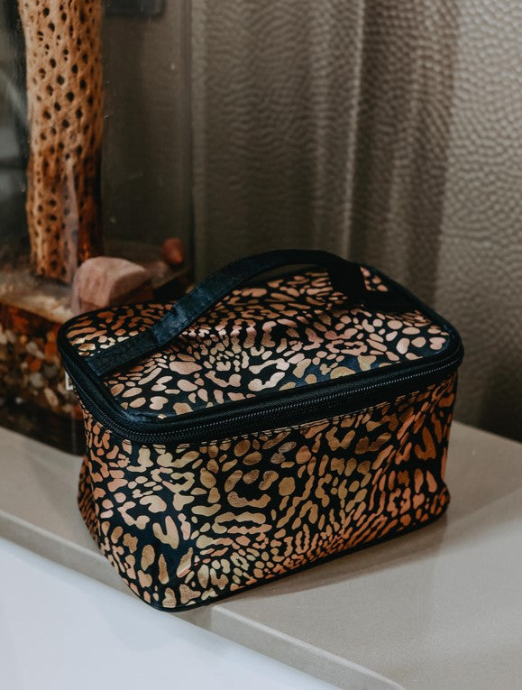 Calling all leopard lovers! We have the makeup case for you. Material: Polyester and PU Leather Dimensions: 19x12x10 cm