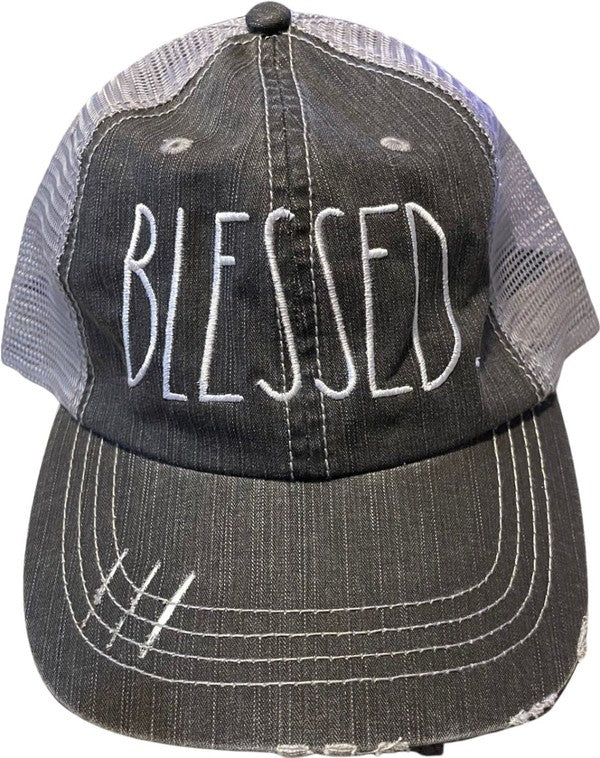 Blessed Rae Dunn Inspired Embroidered Trucker Hat Trucker hat with mesh back and velcro closing.