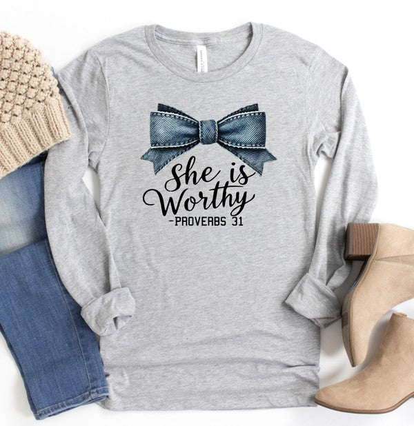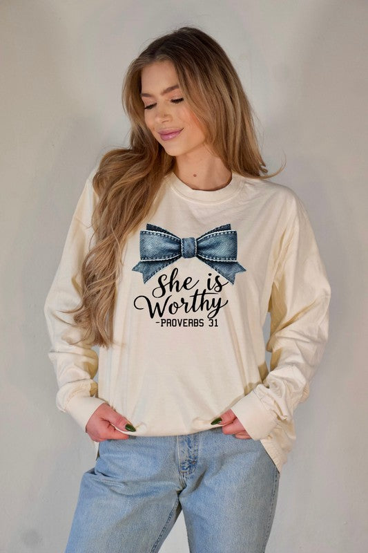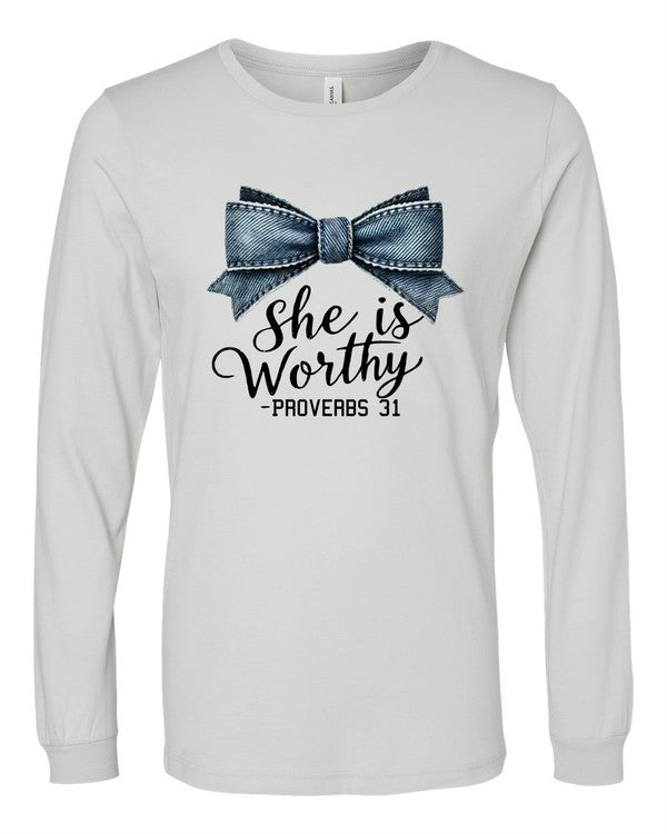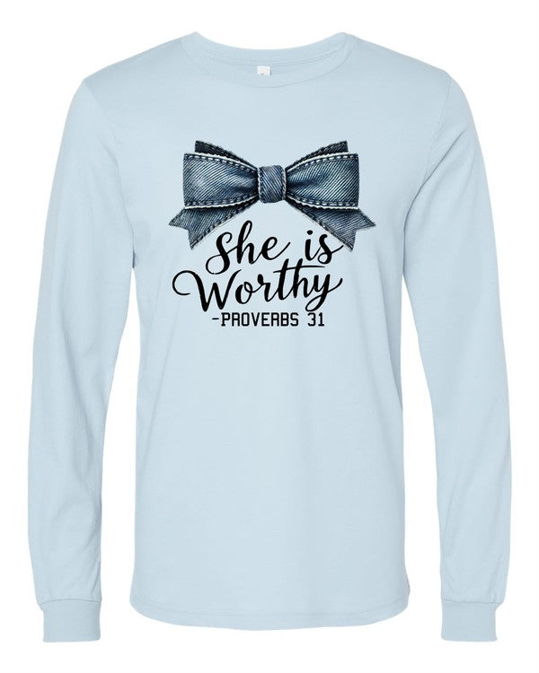 Blue Bow She Is Proverbs 31 Graphic Tee Shirt