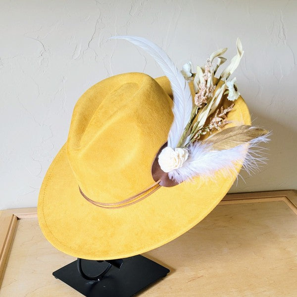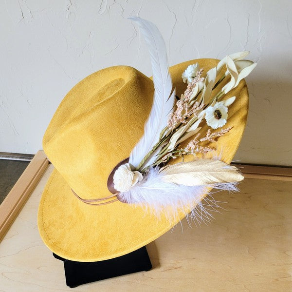 Boho Western Wedding Floral Bridsmaid Hat Mustard