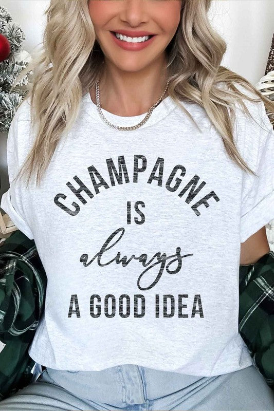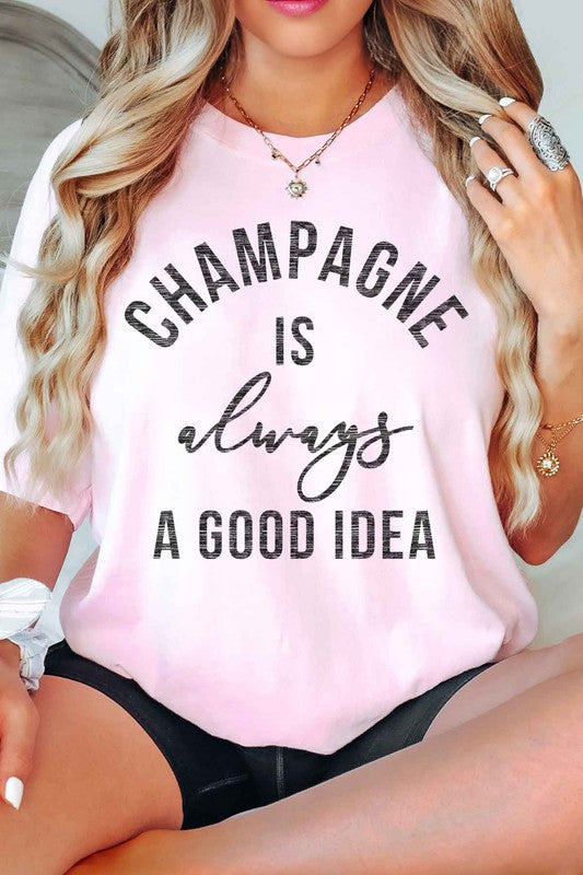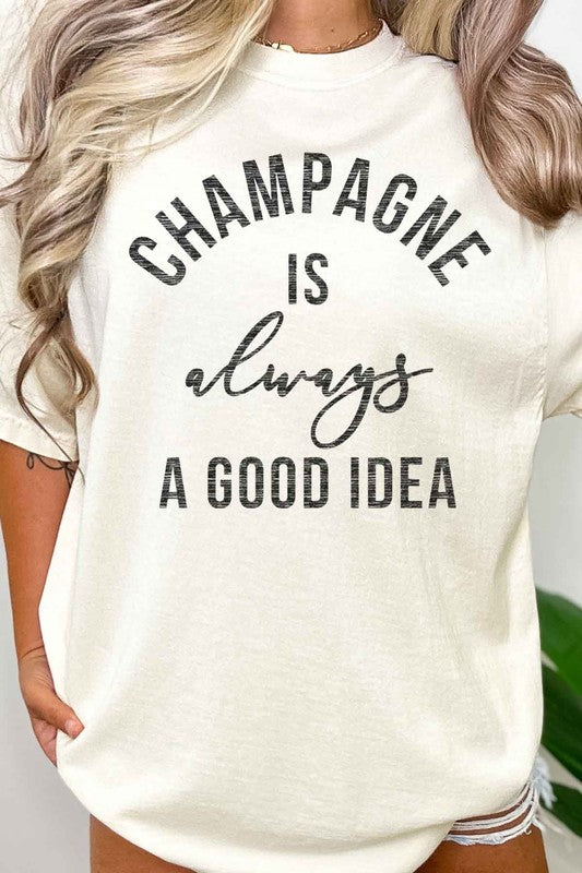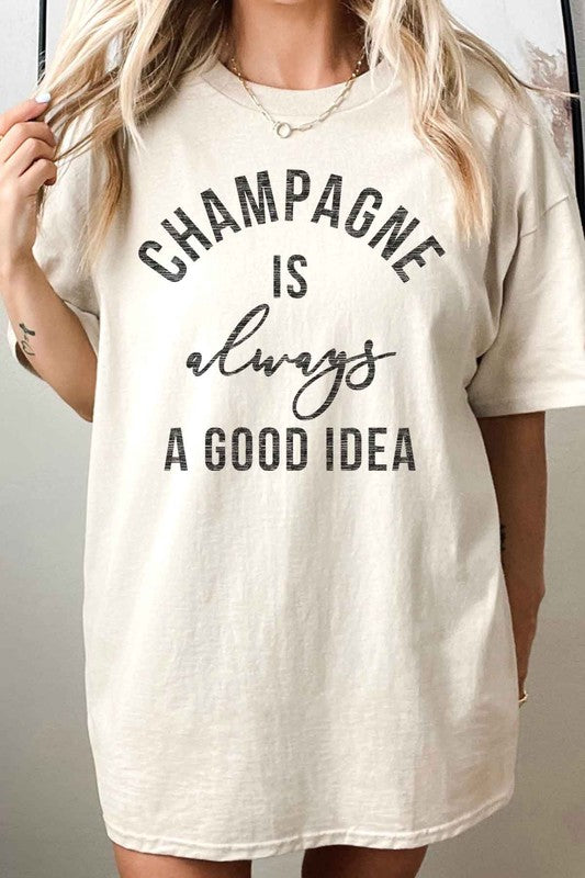 CHAMPAGNE IS ALWAYS A GOOD IDEA OVERSIZED GRAPHIC TEEPREMIUM COTTONOVERSIZED FIT