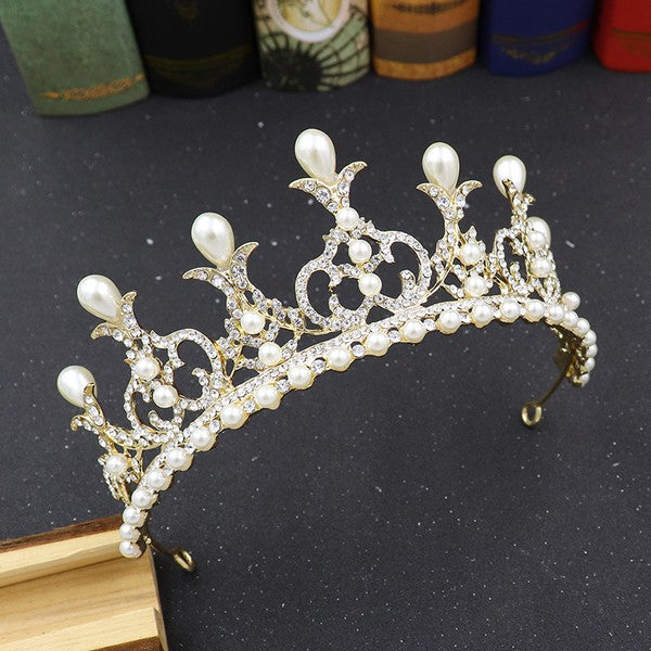 • Load image into Gallery viewer, Crown Rhinestone Pearl Headband L2956