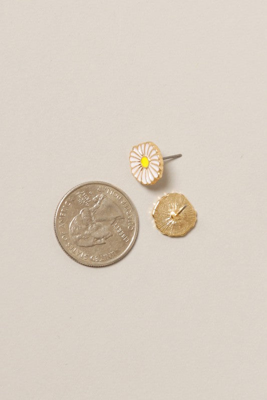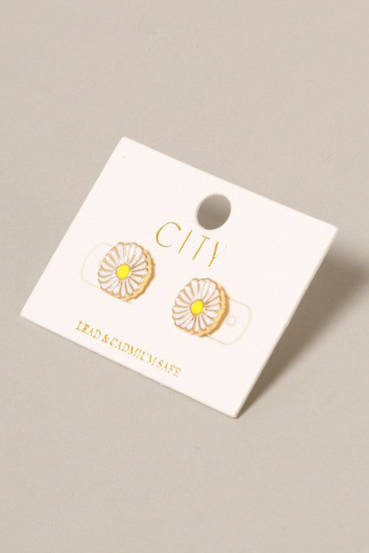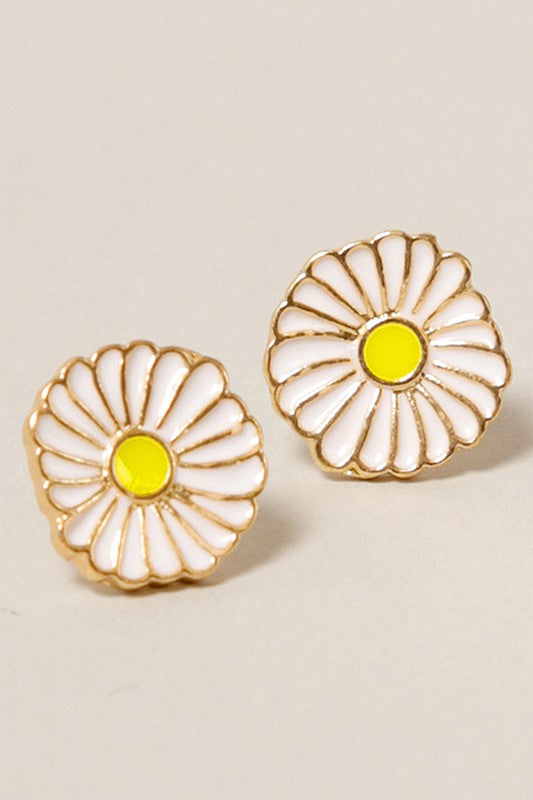 Enamel Cute Daisy Flower Stud Earrings for Girls Teen Women