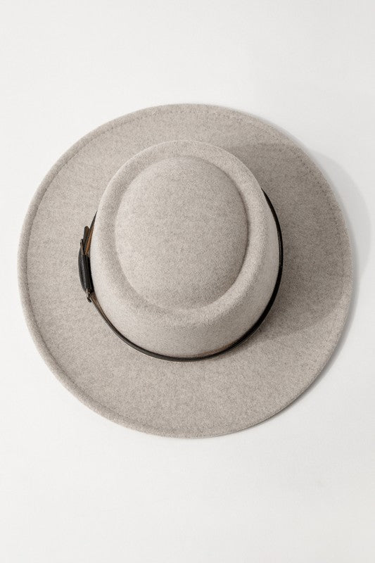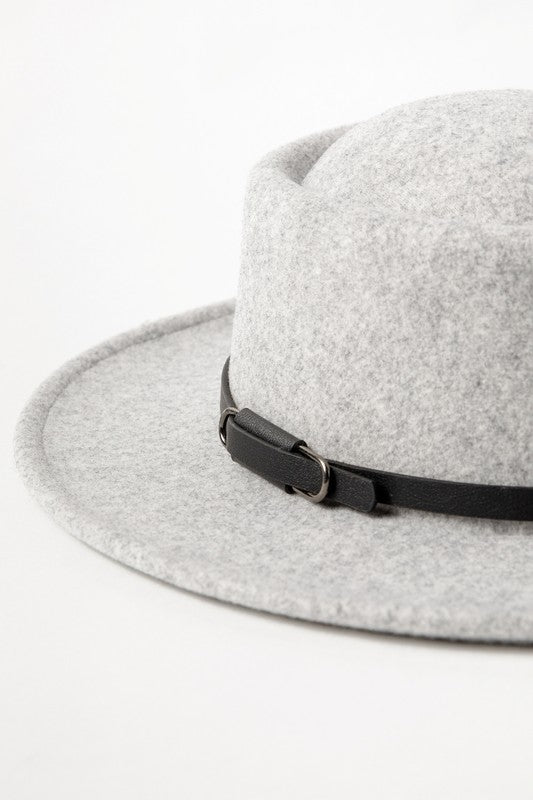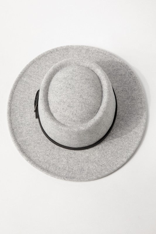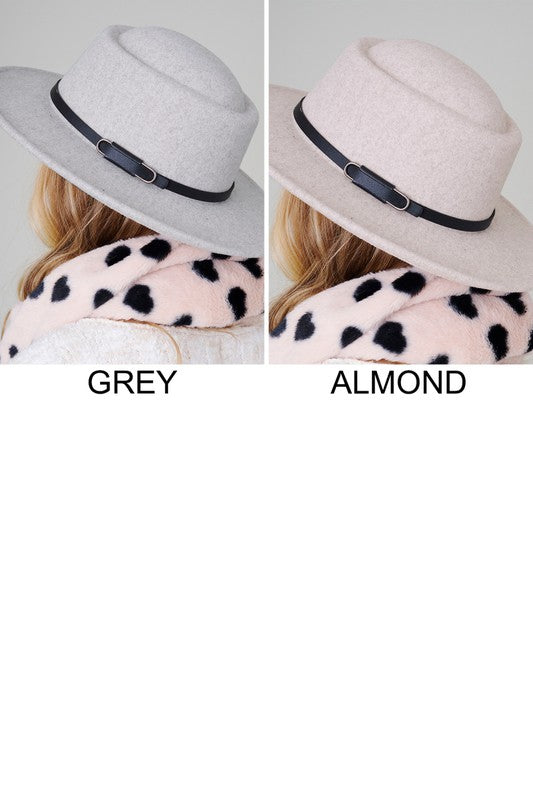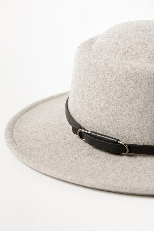 Double Buckle Leather Strap Fedora Hat