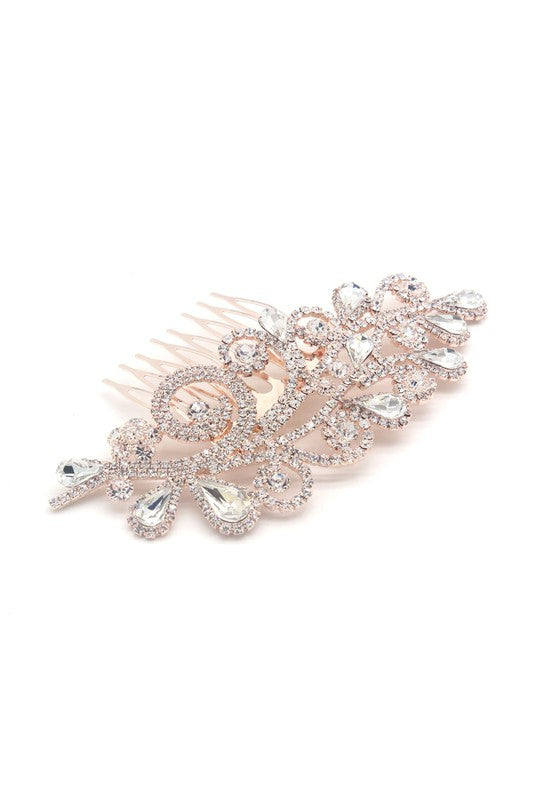 - Bridal Theme Series Flower leaf Theme Rhinestone Crystal Hair comb headpiece - Perfect for Bridal, Pageant, Prom, Quinceanera, or special occasions. - Clasp: Alloy Comb - Material: Zinc Alloy - Plating: Gold, Silver, Rose gold Plated - Stone: Rhinestone - Size & Weight are approximate. It may slightly different. - Lead & Nickel Compliance or Free.