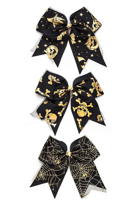 Gold Foil Halloween Large Bow Hair Clip Set