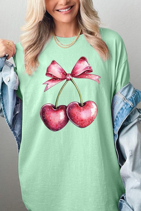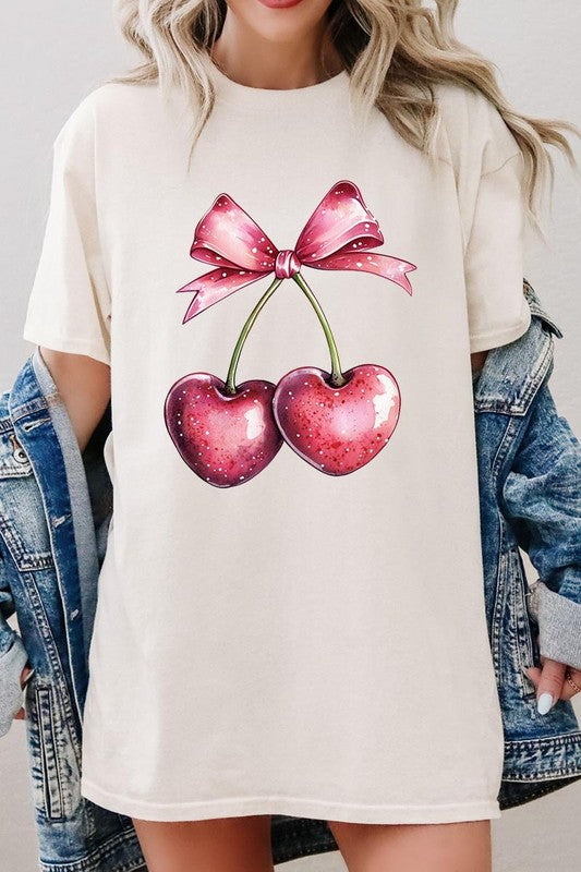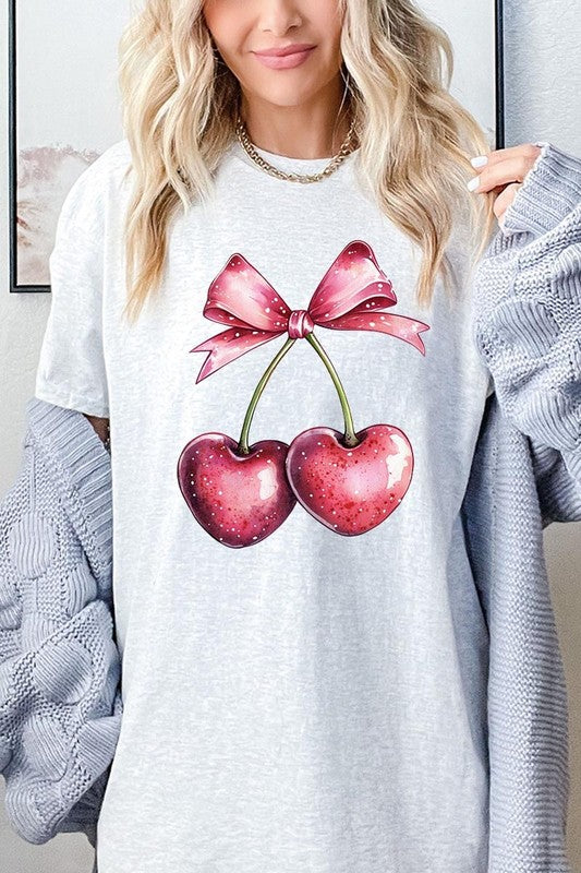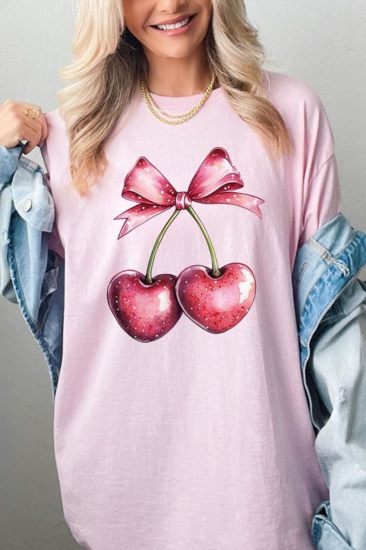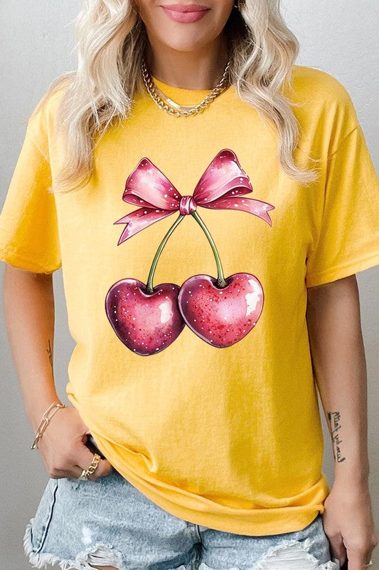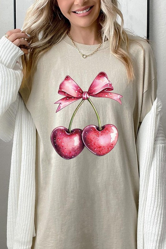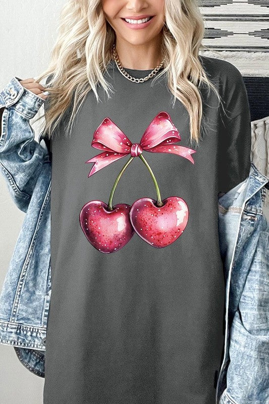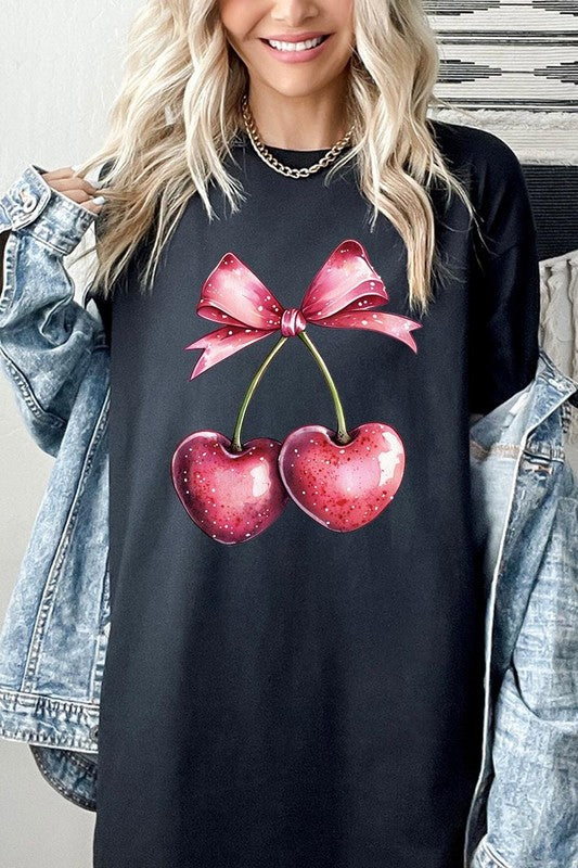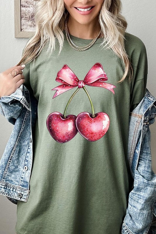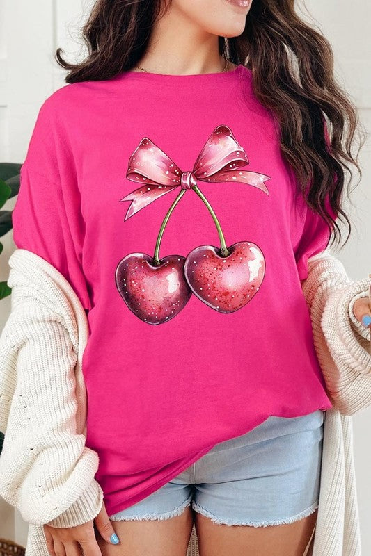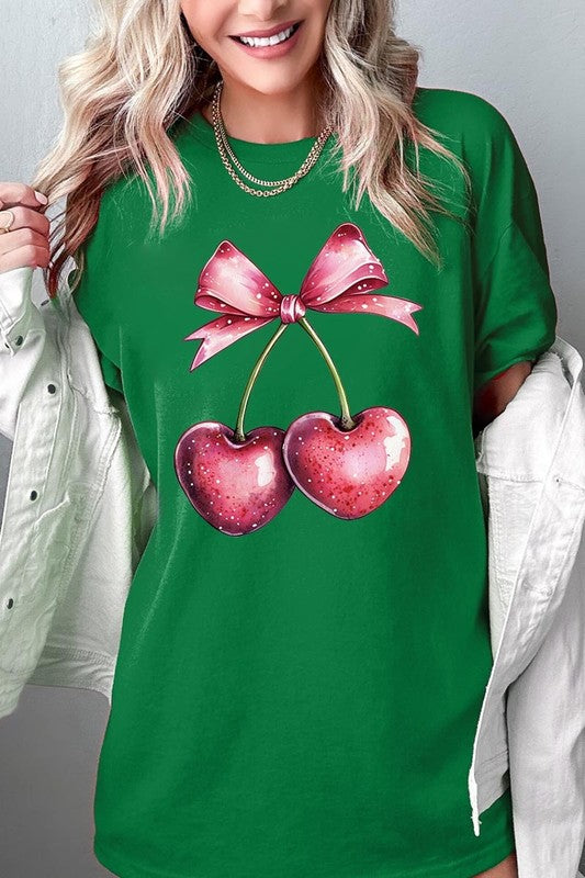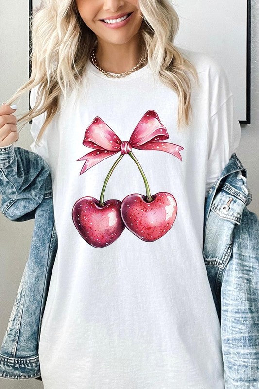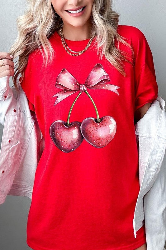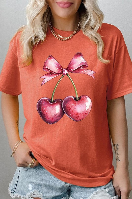Heart Cherries With Bow Graphic Plus Heavy Cotton Tee. **PLUS SIZE**