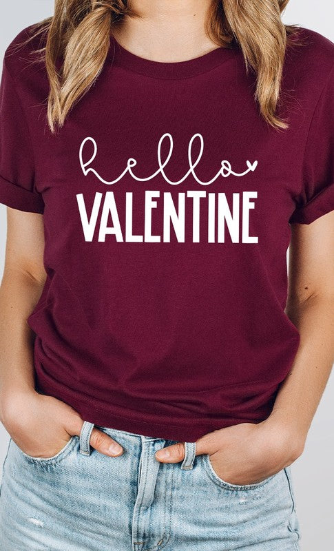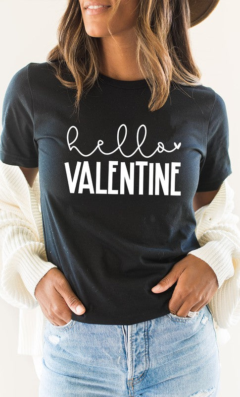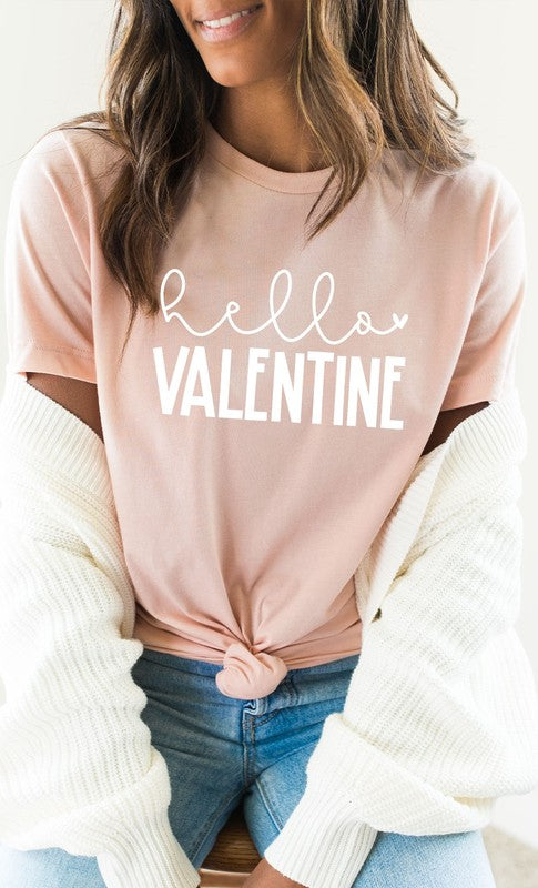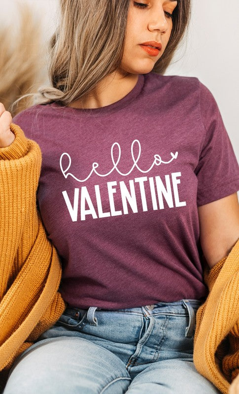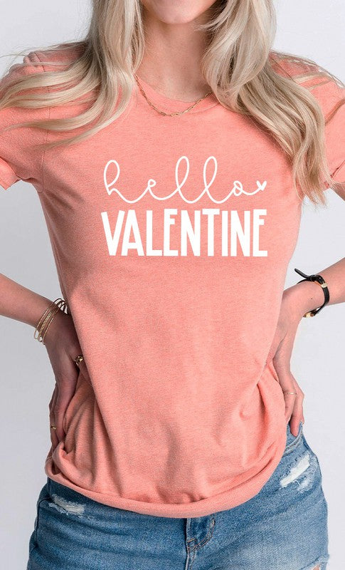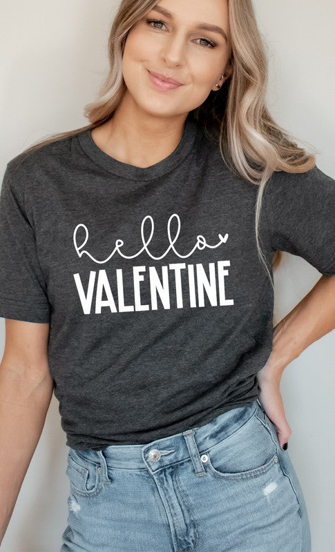 Hello Valentine Heart Doodle Graphic Tee. Most t-shirt colors are 52/48 cotton/polyester blend. Athletic Heather & Black Heather are 90/10 cotton/polyester. White, cream, citron, pink, canvas red, lilac, mint are 100% cotton. Ash is 99/1.