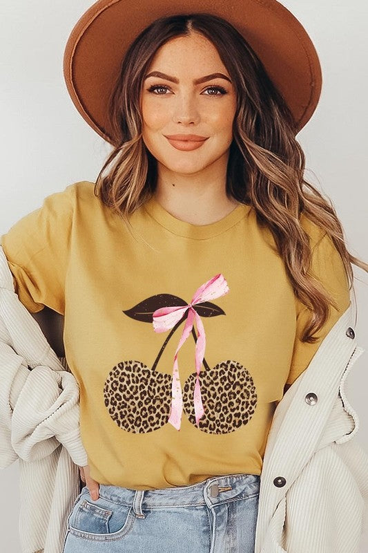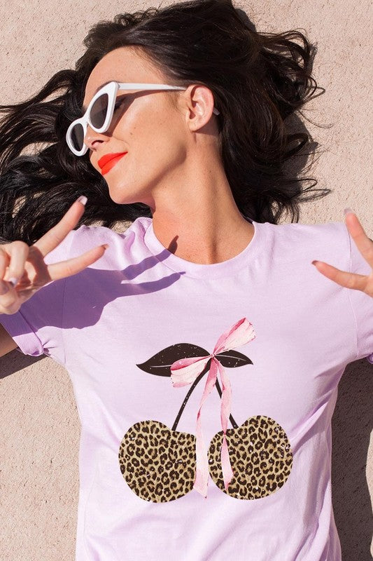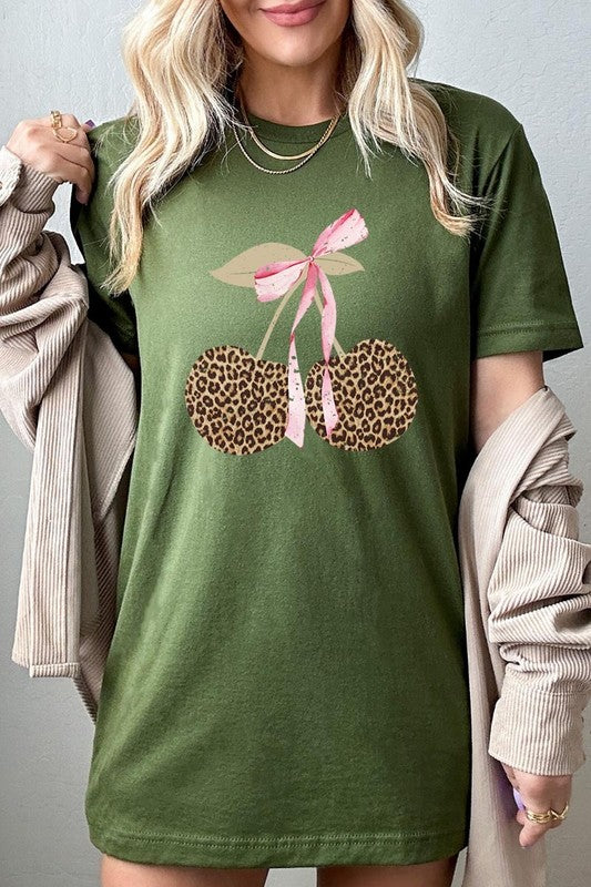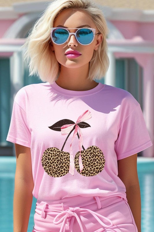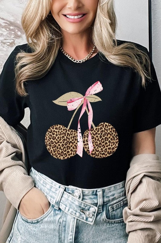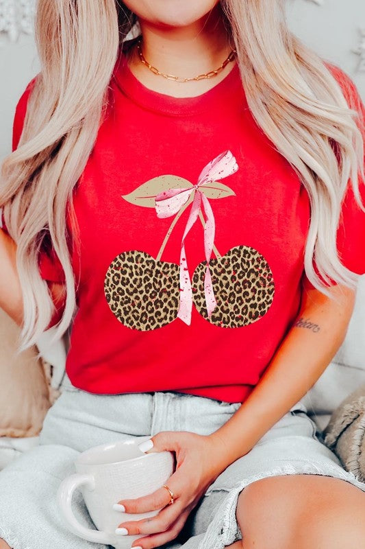 Leopard Cherry Bow Graphic Plus Tee. **PLUS SIZE**