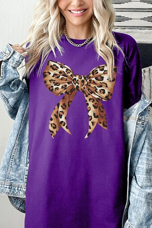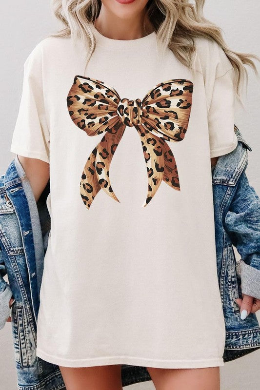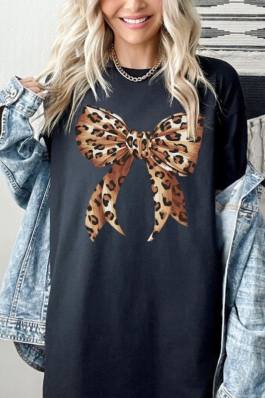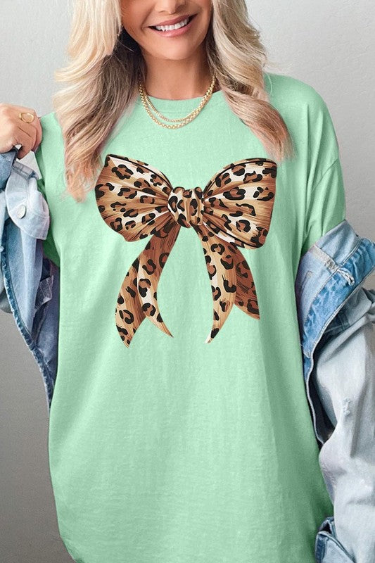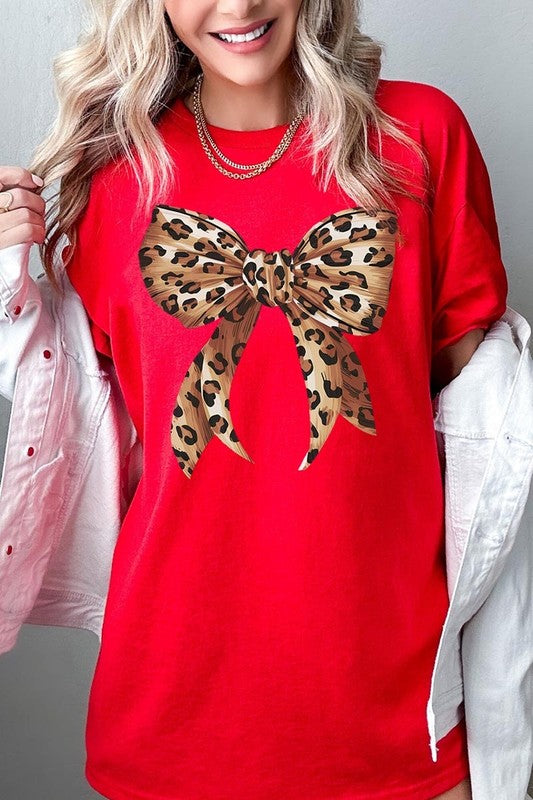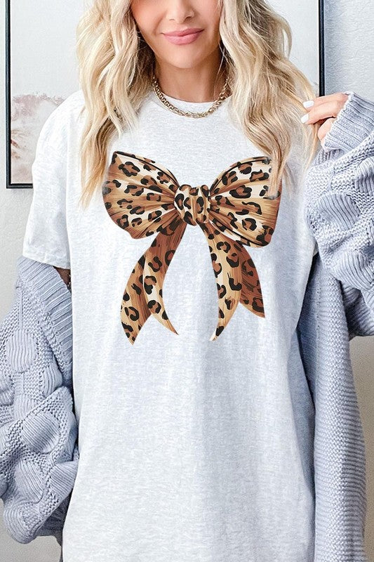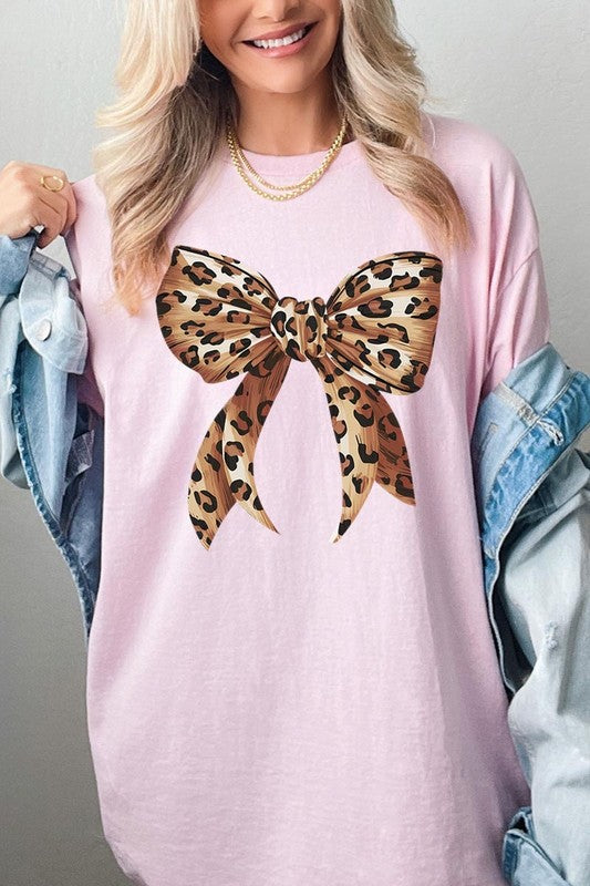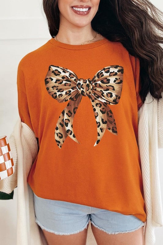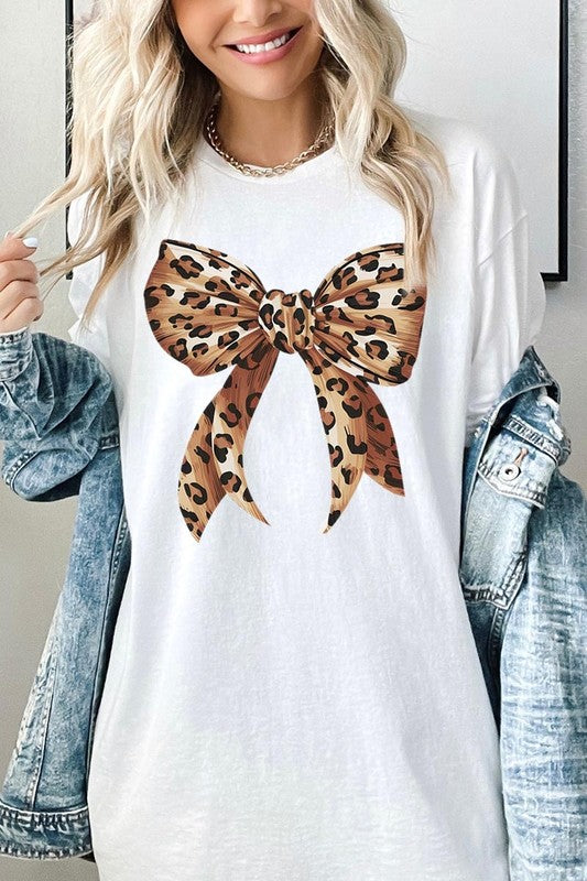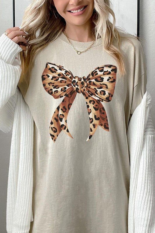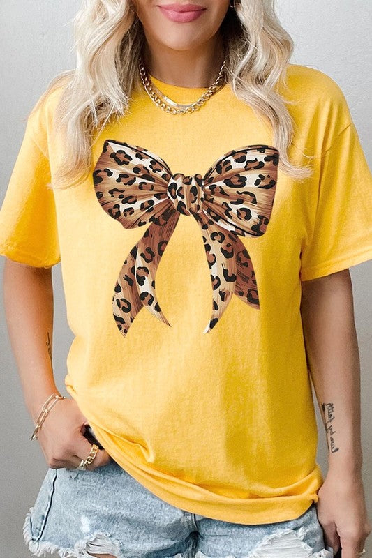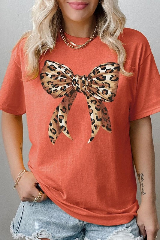 Leopard Print Bow Graphic Heavy Cotton Tee.
