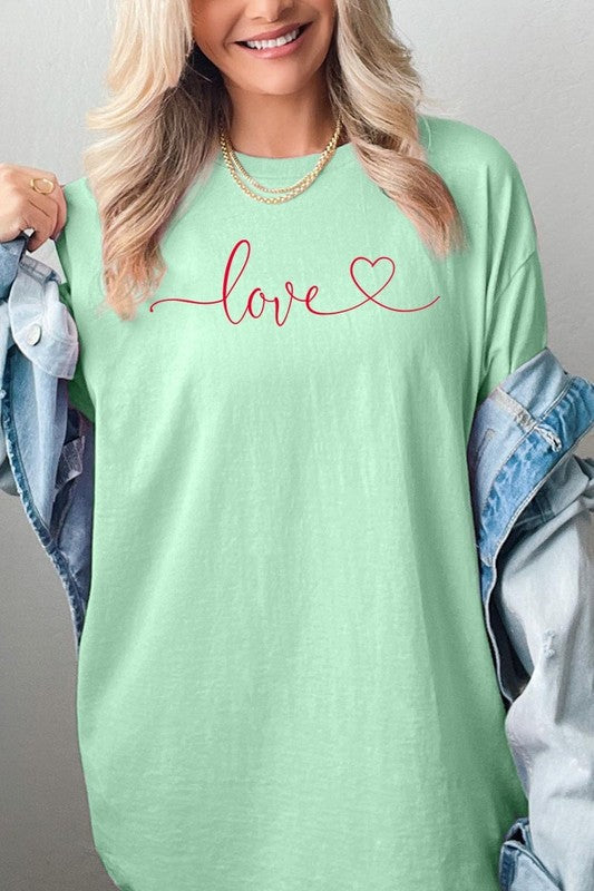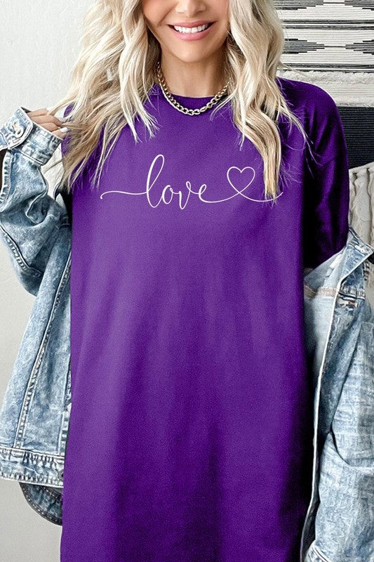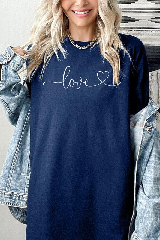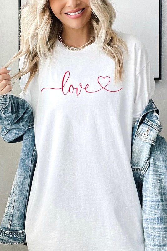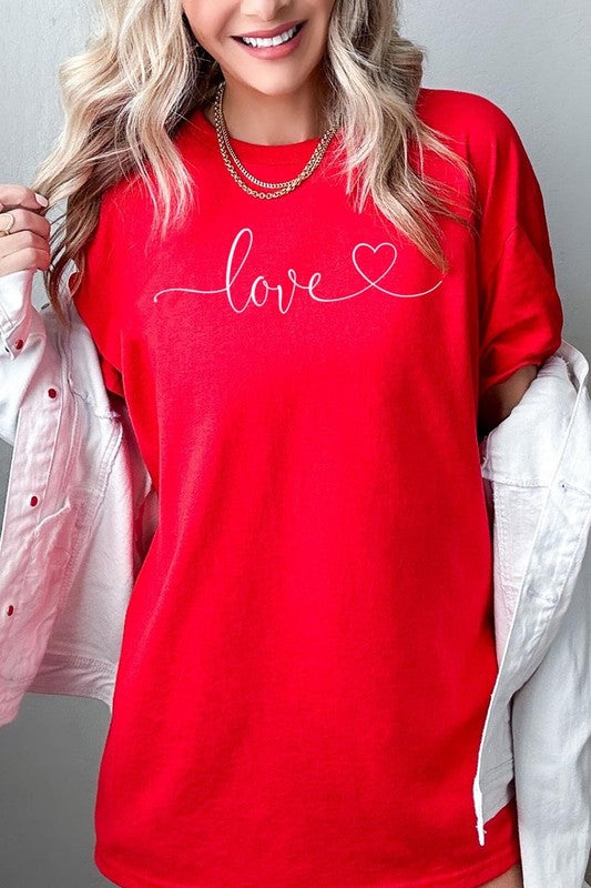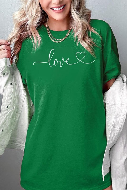 Love With Heart Graphic Plus Heavy Cotton Tee. **PLUS SIZE**