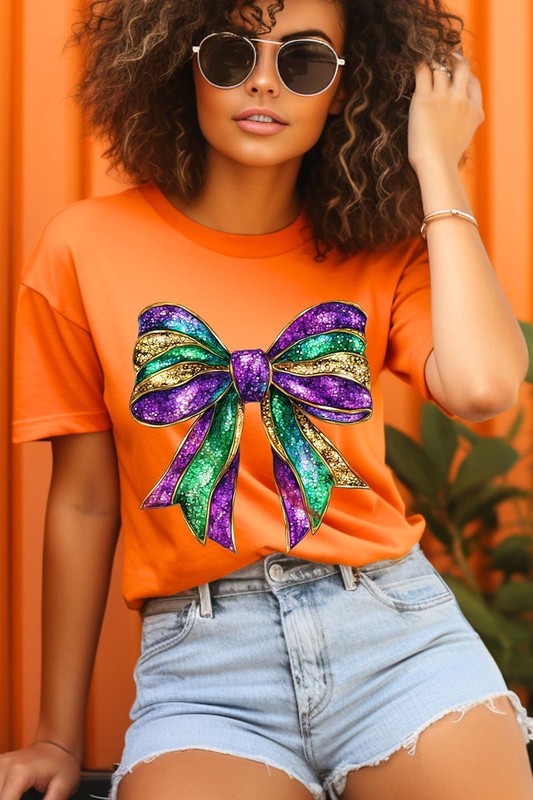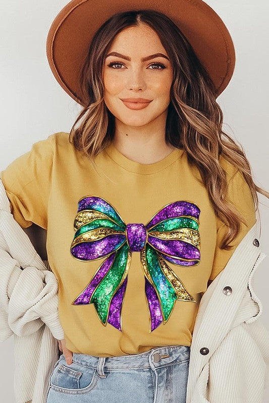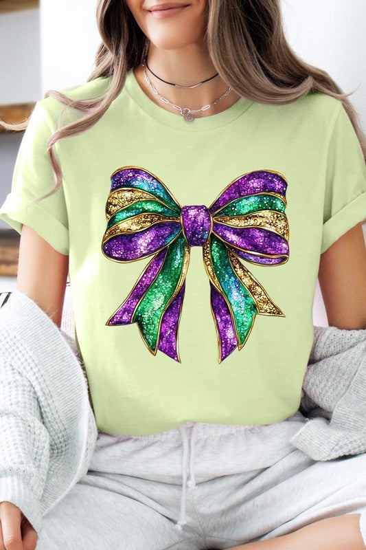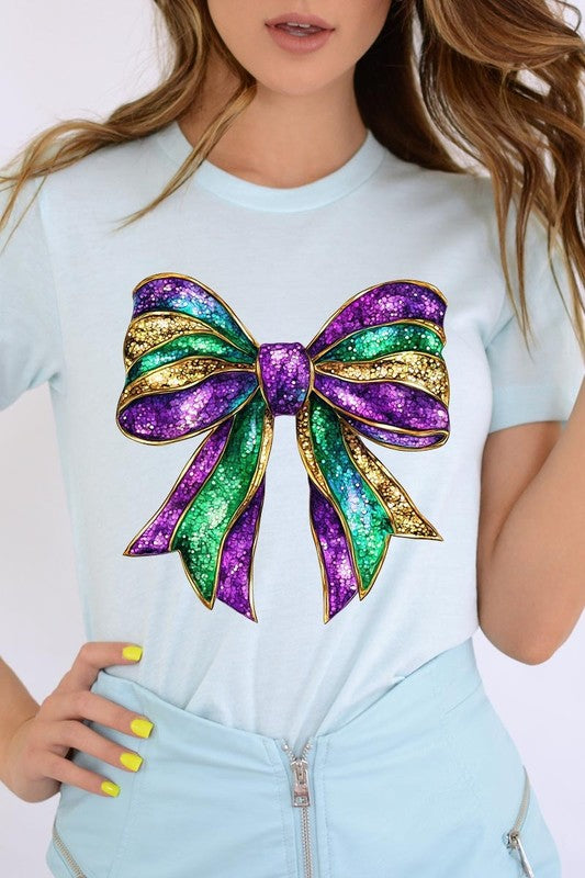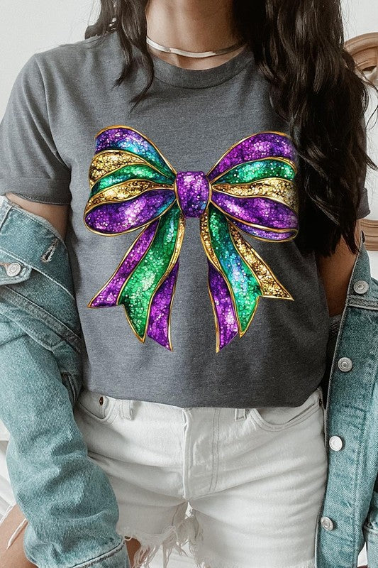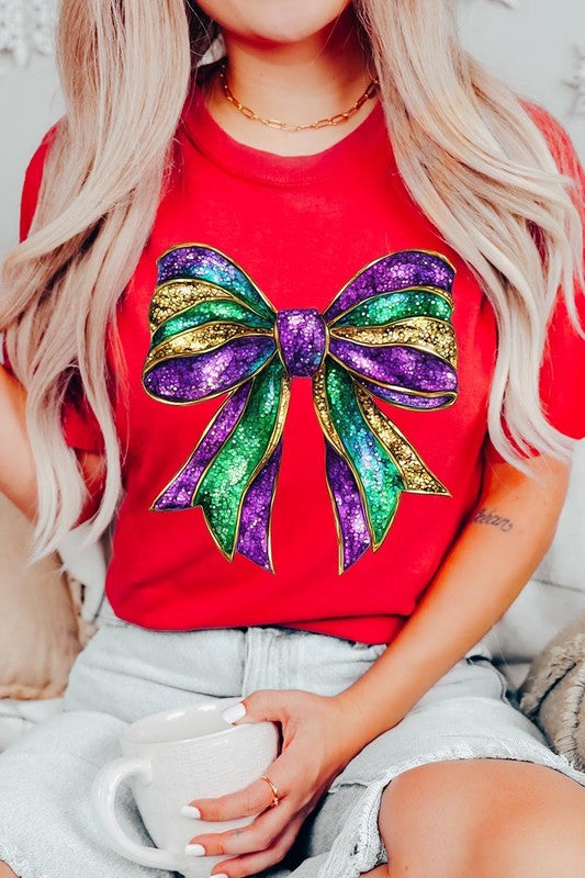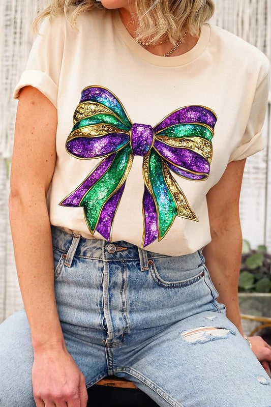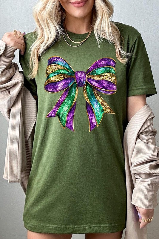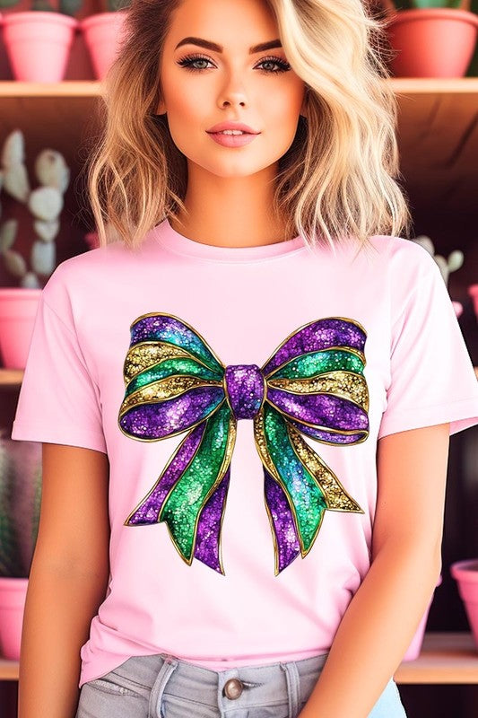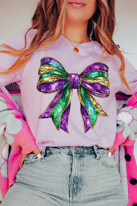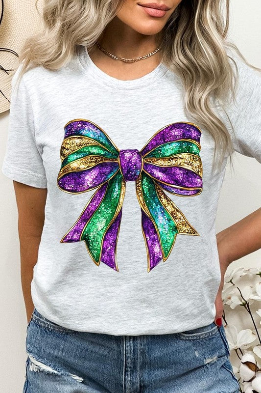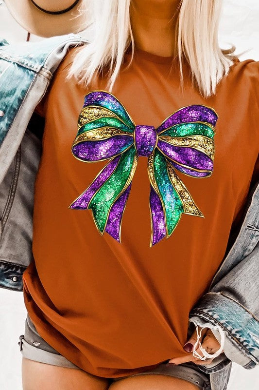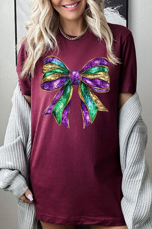 Mardi Gras Bow Graphic Plus Tee. **PLUS SIZE**
