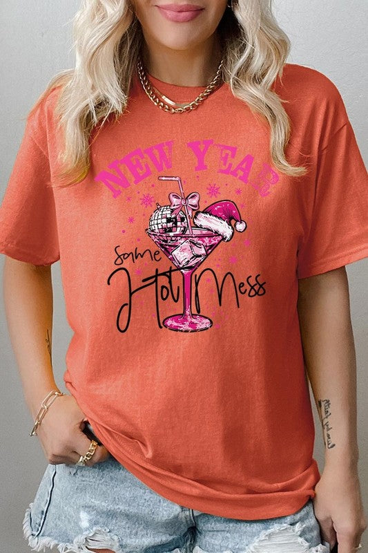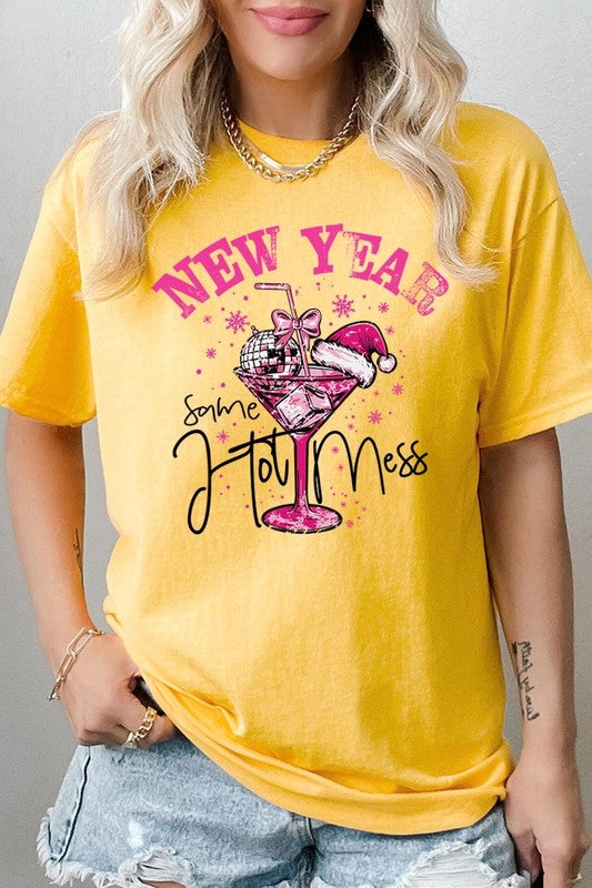 New Year Same Hot Mess Graphic Heavy Cotton Tee.