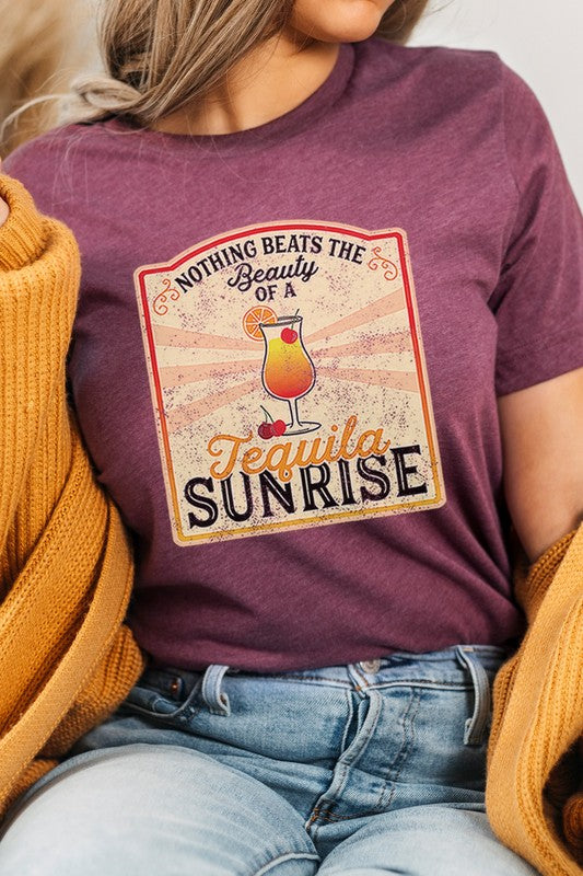 Introducing our Nothing Beats The Beauty Of A Tequila Sunrise drinking graphic tee from Kissed Apparel. This vibrant and fun design captures the spirit of summer with its colorful depiction of a tequila sunrise cocktail. Most t shirt colors are 52/48 cotton/poly blend. White and Cream tees are 100% cotton, Ash tees are 99/1 cotton/poly. Whether your customers are avid cocktail enthusiasts or simply love the laid-back vibes of a tequila sunrise, this graphic tee is sure to be a hit at any party.