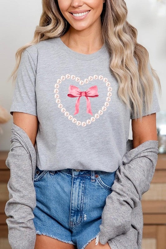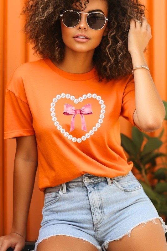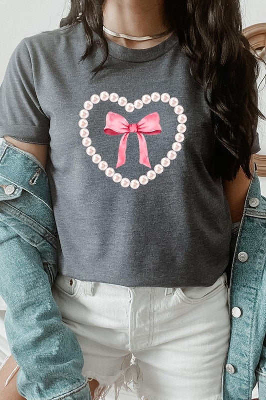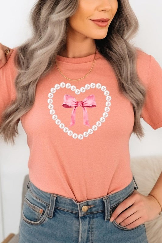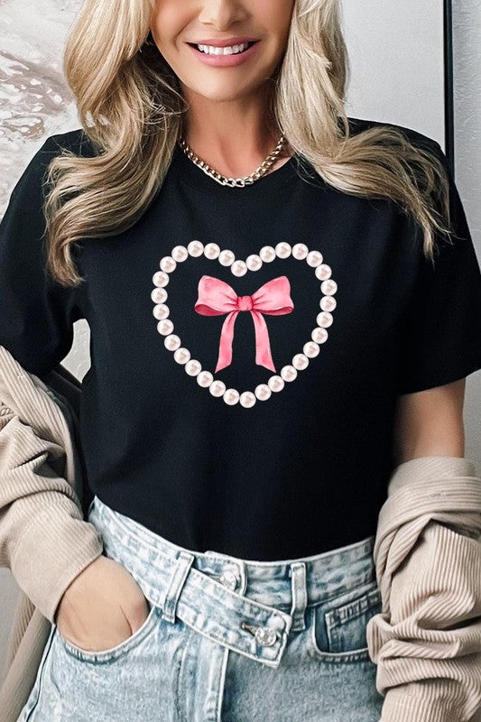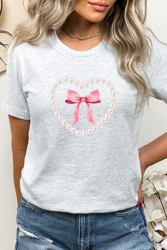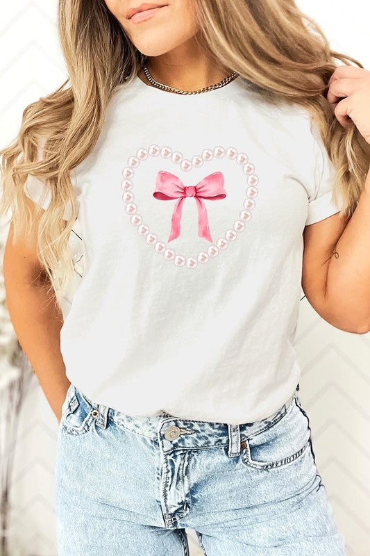 Pink Pearl Heart Bow Graphic Plus Tee. **PLUS SIZE**