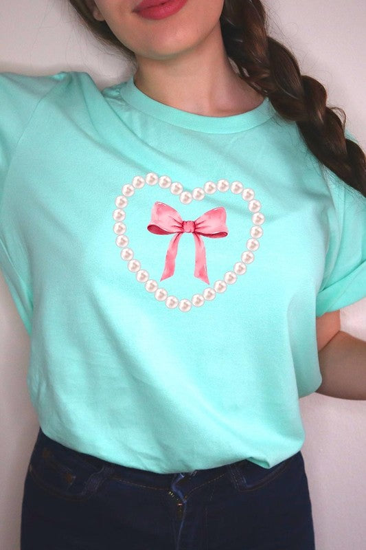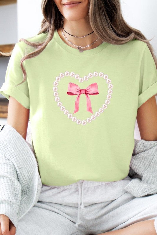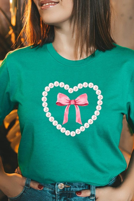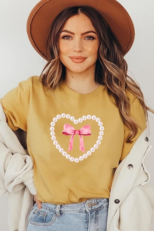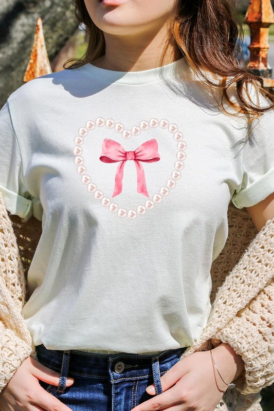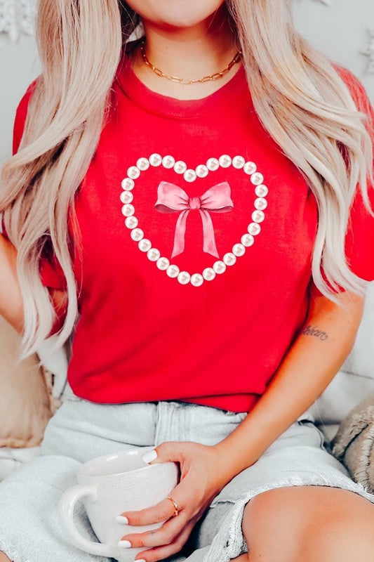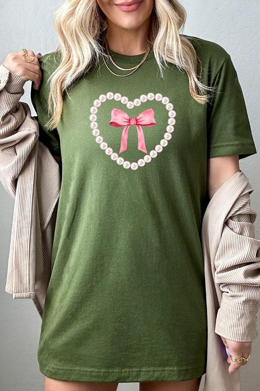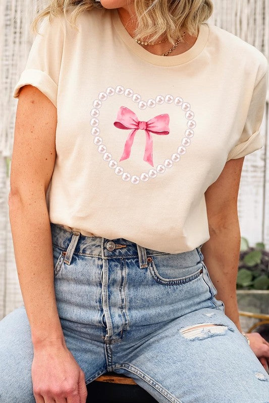 Pink Pearl Heart Bow Graphic Plus Tee. **PLUS SIZE**