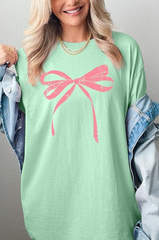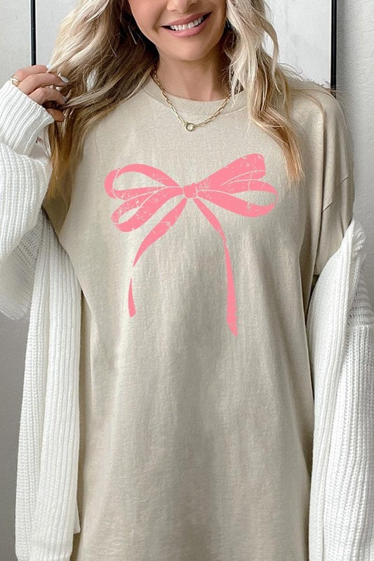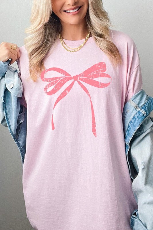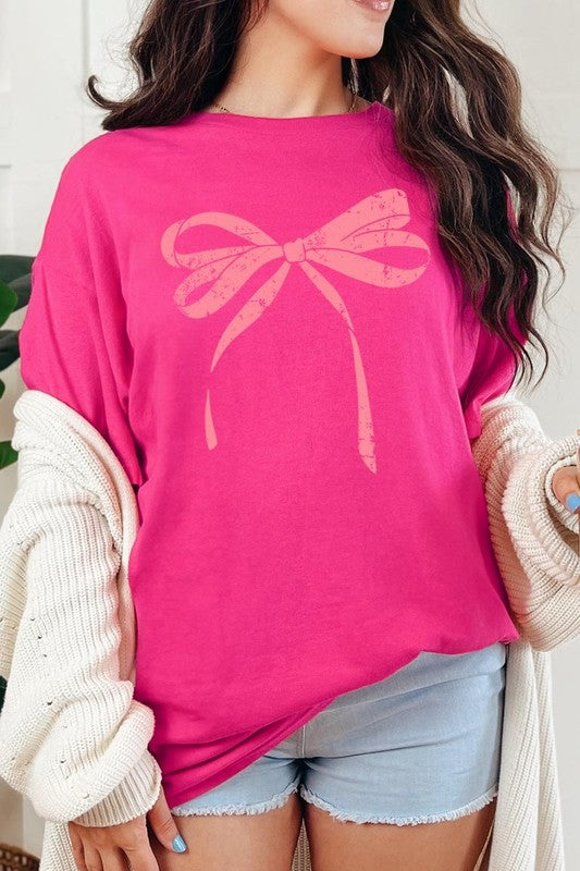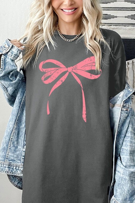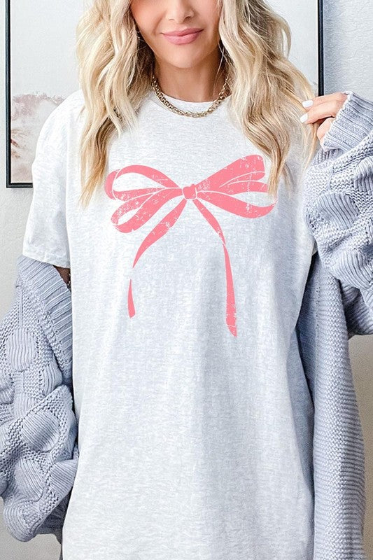 Pink Valentine Bow Graphic Plus Heavy Cotton Tee. **PLUS SIZE**