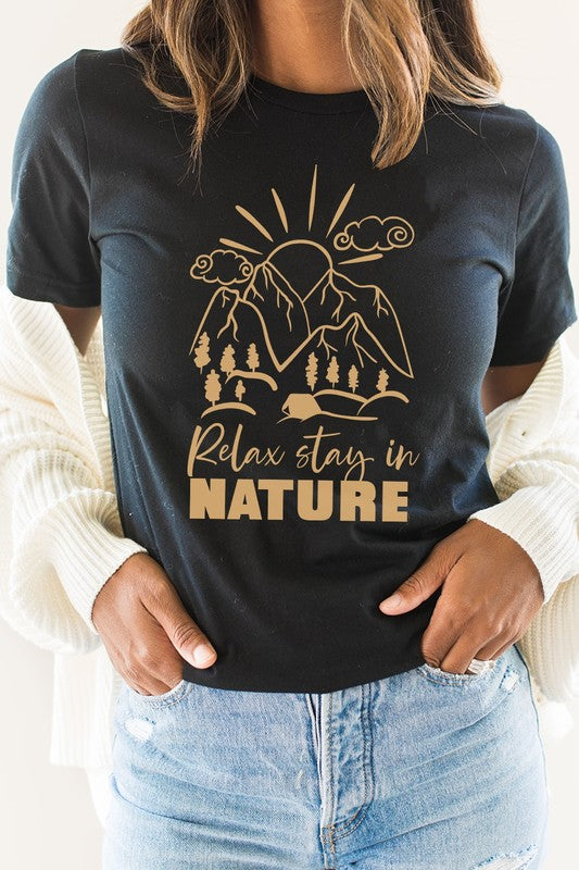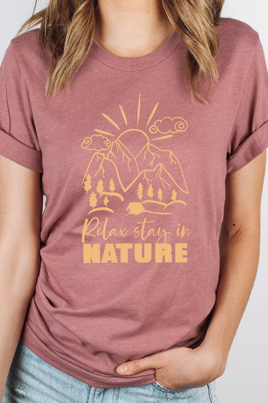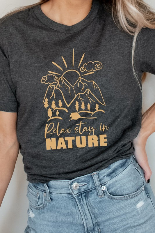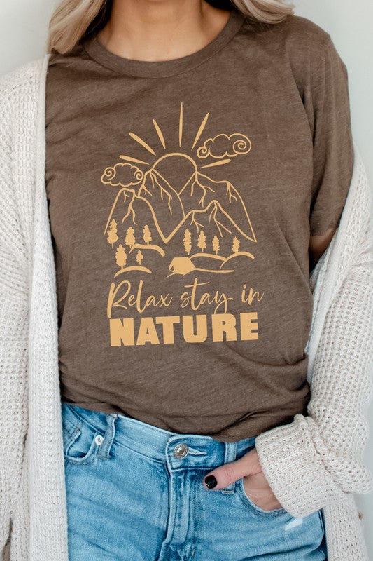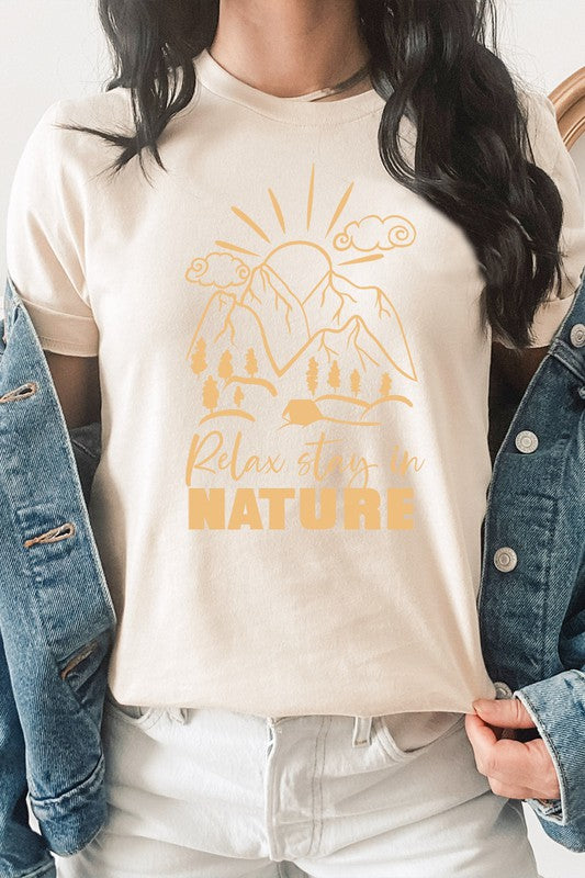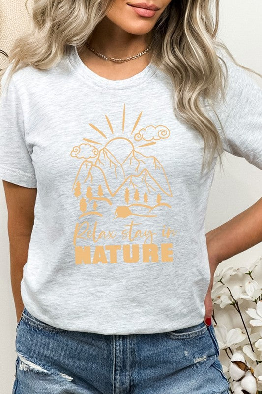 Introducing our Relax Stay In Nature Mountain Camping Graphic Tee, designed for those seeking serenity and outdoor adventures. Most t shirt colors are 52/48 cotton/poly blend. White and Cream tees are 100% cotton, Ash tees are 99/1 cotton/poly. Available in various sizes, it's an ideal addition to camping gear stores and outdoor-themed boutiques. Encourage your customers to unwind and reconnect with nature with our Relax Stay In Nature Mountain Camping Graphic Tee. By Kissed Apparel.